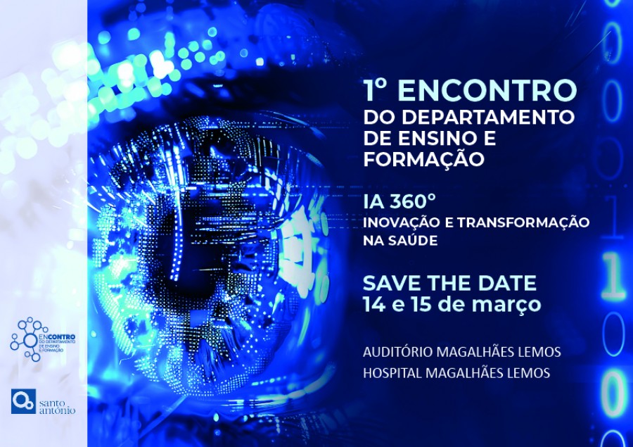 O 1º Encontro do Departamento de Ensino e Formação (DEFI) da ULS de Santo António vai decorrer no Auditório Hospital Magalhães Lemos, nos dias 14 e 15 de março com o tema “IA 360º: Inovação e Transformação em Saúde”