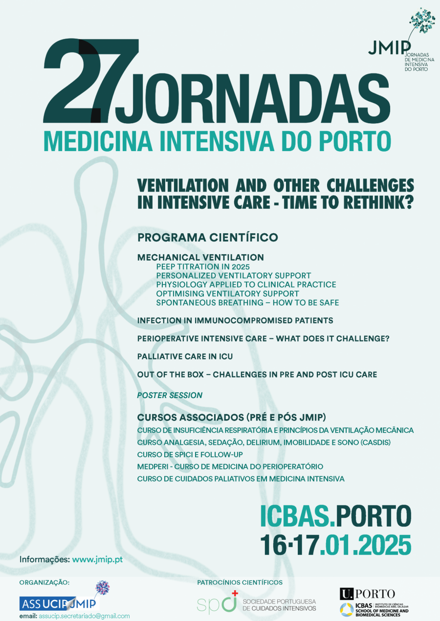 A 27ª edição das Jornadas de Medicina Intensiva do Porto (JMIP 2025), vai acontecer nos dias 16 e 17 de janeiro de 2025 no Salão Nobre do ICBAS, no Porto.