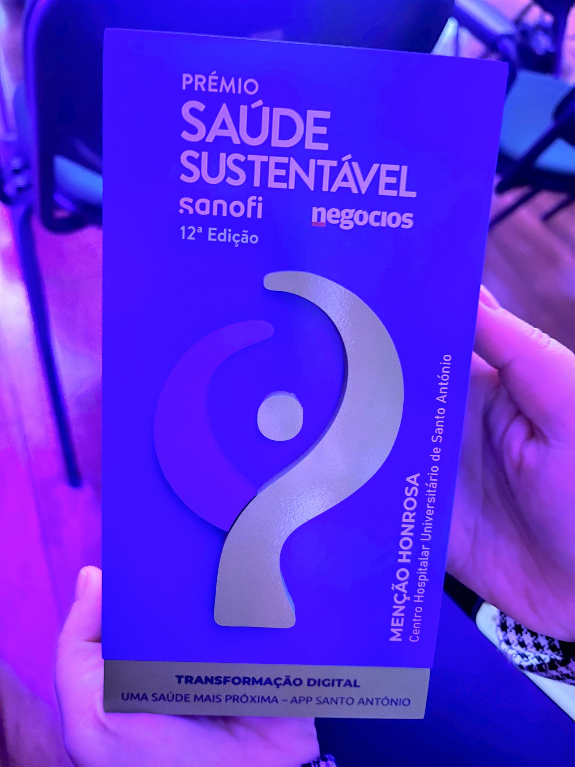 Decorreu esta quarta-feira, 25 de outubro, no Salão Nobre da Reitoria da Universidade de Lisboa, a entrega de prémios da 12ª edição dos Prémios Saúde Sustentável. No total de 60 candidaturas, o Centro Hospitalar Universitário de Santo António, recebeu a menção honrosa com a APP Santo António, na categoria de Transformação Digital.