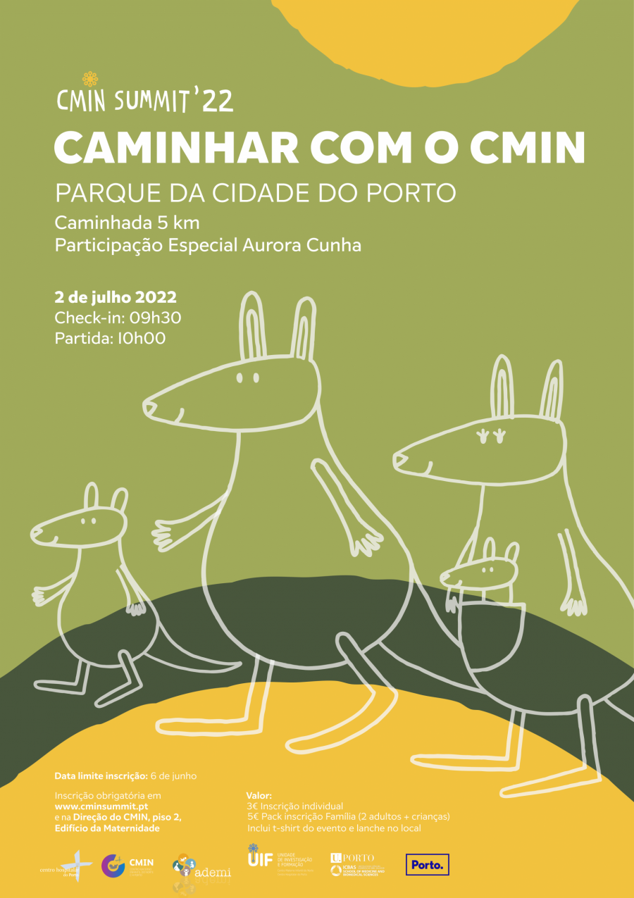 Caminhar com o CMIN/CHUPorto é mais do que uma caminhada. Ciente da sua responsabilidade social, da importância da promoção de estilos de vida saudáveis e da prática de atividade física, o CMIN Summit’22 desafia os amigos, colaboradores e utentes do Centro Materno-Infantil do Norte do Centro Hospitalar Universitário do Porto a Caminhar com o CMIN.