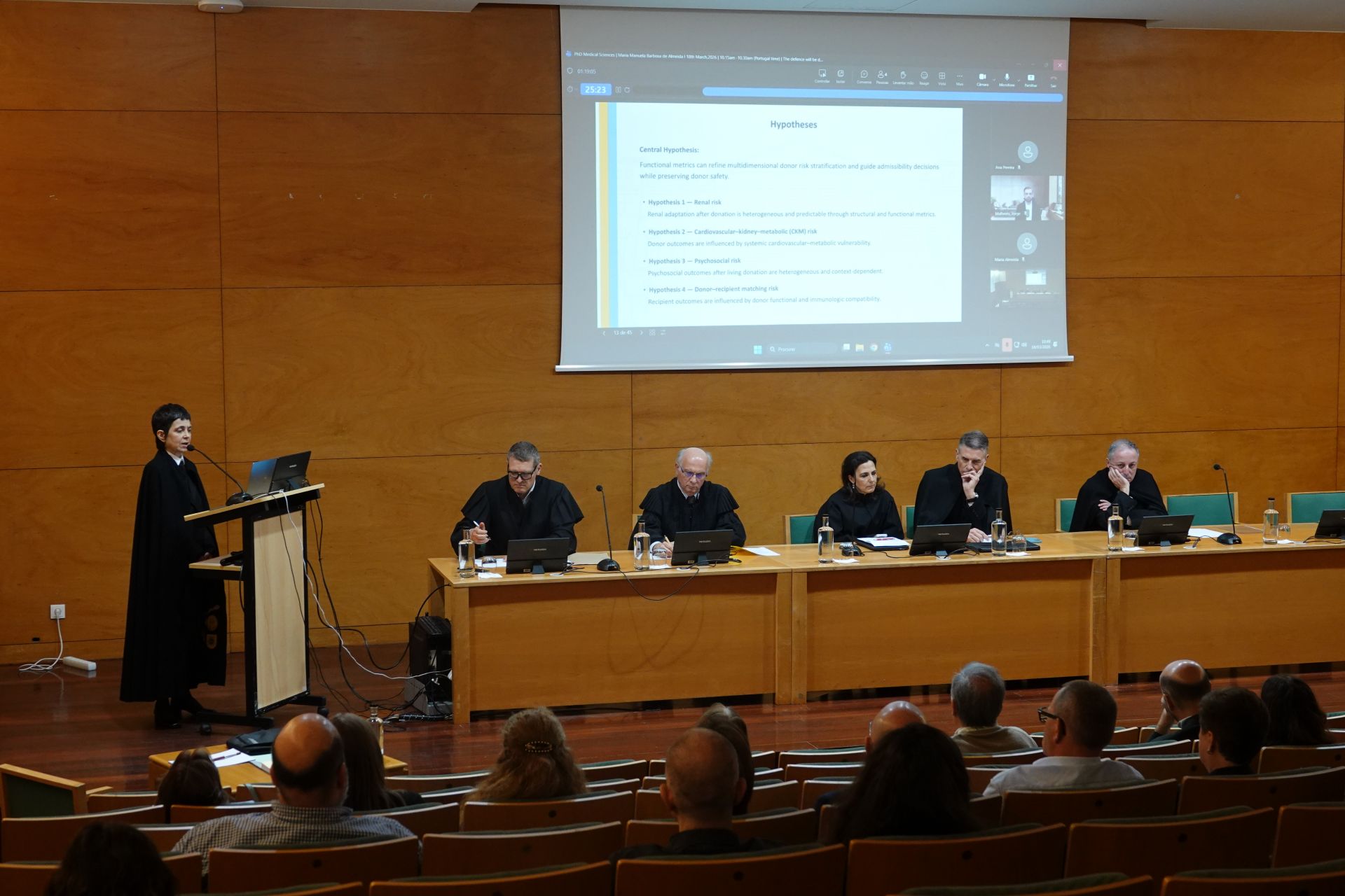 Por sua vez, Manuela Almeida defendeu "Organ admissibility and donor safety: functional metrics to improve donor selection for a safe expansion of living donor kidney transplantation ", sob a orientação de Jorge Malheiro (ULSSA e ICBAS), tendo como principais arguentes Fritz Diekmann (Universidade de Barcelona) e André Weigert (Universidade de Lisboa).
