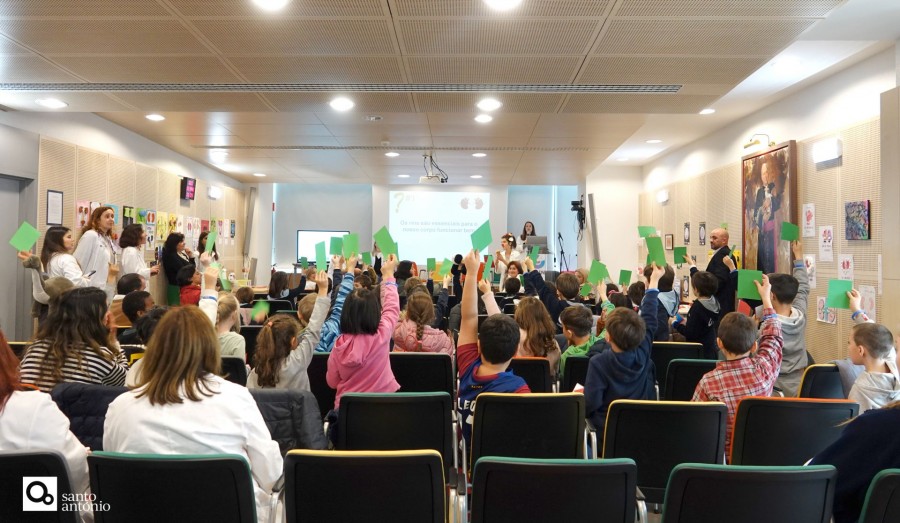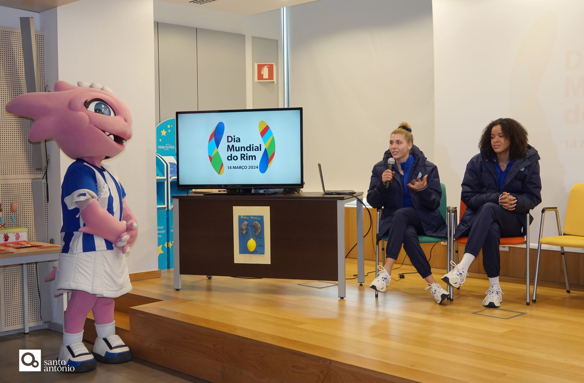 Durante duas horas, os alunos do Colégio Nossa Senhora de Lourdes e da Escola Básica Francisco Torrinha tiveram oportunidade de ouvir falar alguns profissionais de saúde sobre a importância dos rins, a sua função e que comportamentos devem adotar para ter uma vida saudável. Foram ainda surpreendidos com a bonita atuação de uma das utentes mais queridas do CMIN. Durante o evento, os alunos receberam a visita de duas jogadoras de voleibol, do Futebol Clube do Porto, acompanhadas pela mascote, Viena.