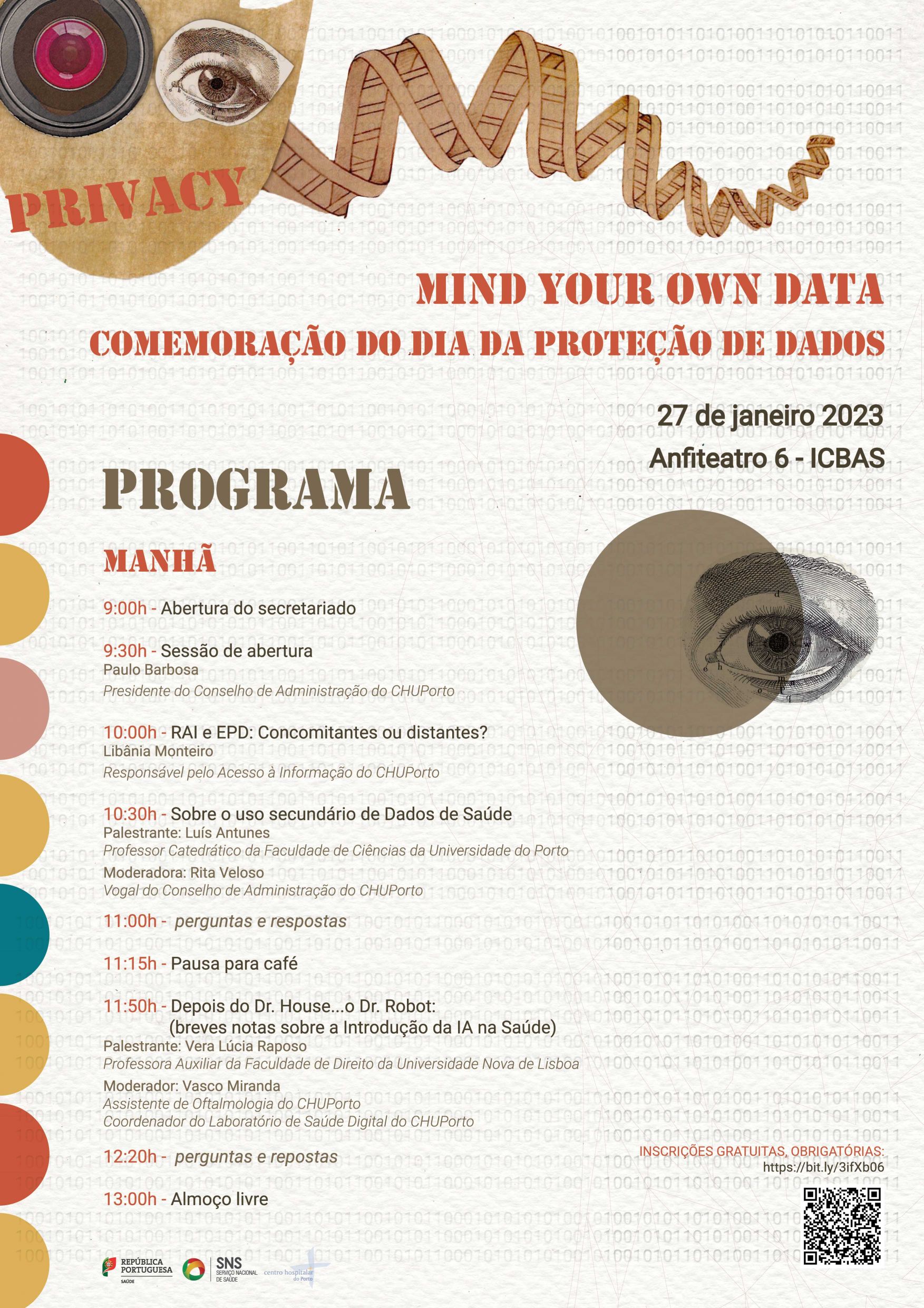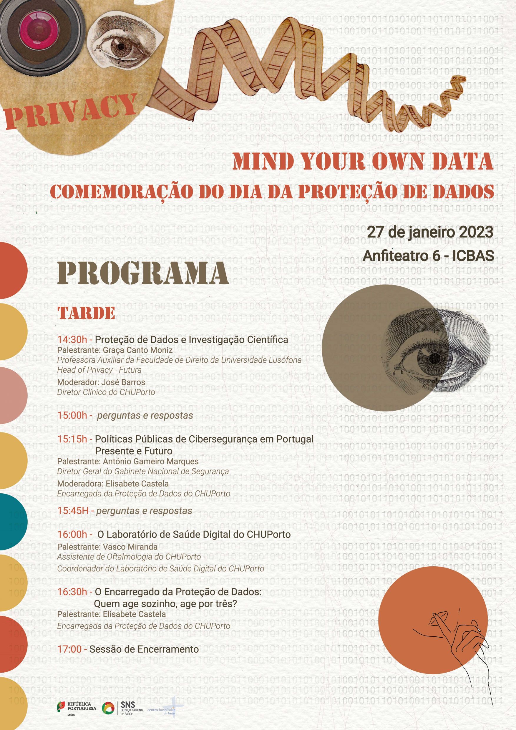 O Centro Hospitalar Universitário do Porto (CHUPorto) organiza um evento alusivo à comemoração do Dia da Proteção de Dados - "Mind Your Own Data", no dia 27 de janeiro de 2023, no Anfiteatro 6 do Instituto de Ciências Biomédicas Abel Salazar (ICBAS), Universidade do Porto.