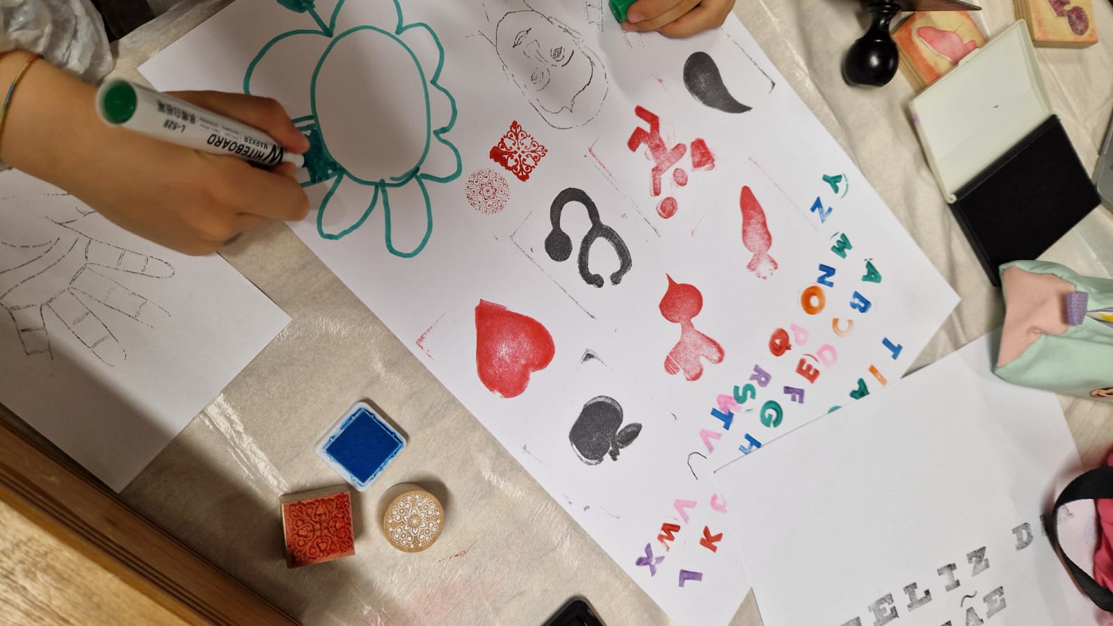 O momento central foi a introdução à técnica de estampagem com block prints, que permitiu aos participantes representar de forma visual práticas associadas ao bem-estar. Entre tintas, blocos e criatividade, as crianças criaram composições originais, refletindo sobre hábitos que promovem uma vida saudável.
