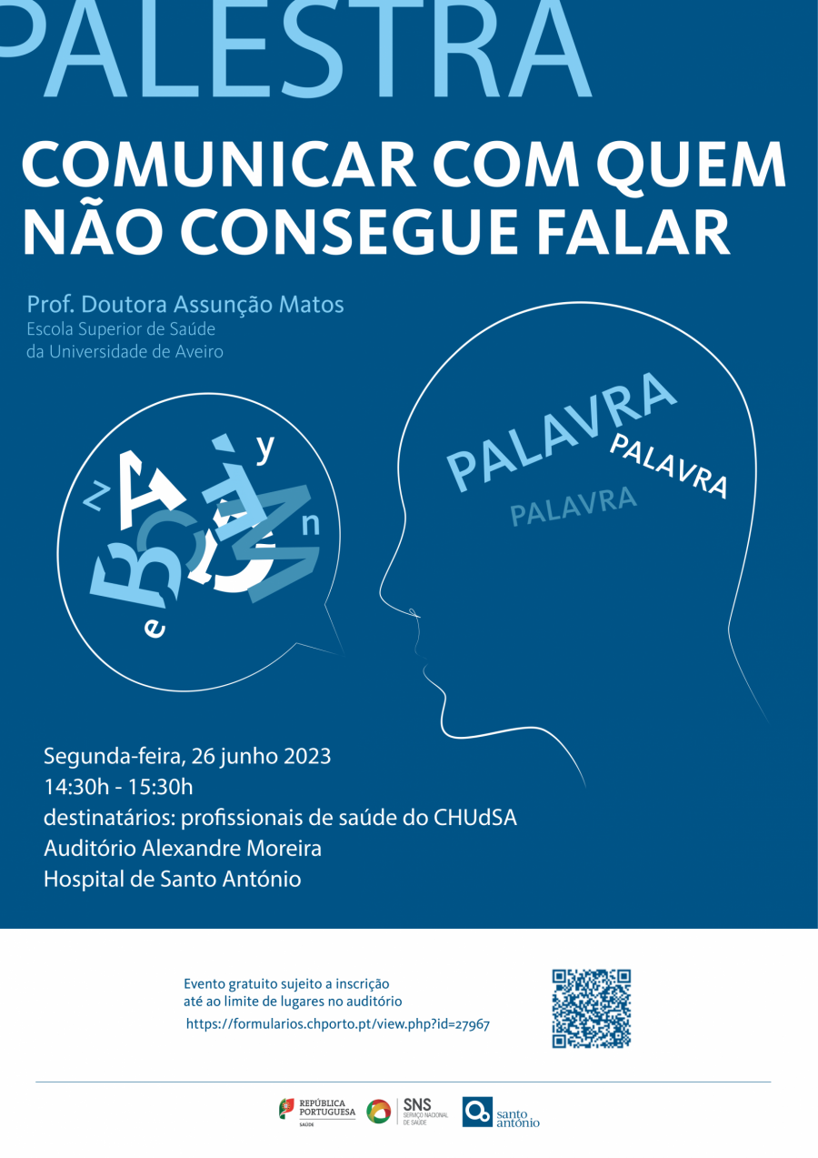 A palestra terá a duração será entre as 14h30 e as 15h30, no Auditório Dr. Alexandre Moreira, destinada a Profissionais de Saúde do CHUdSA subordinada ao tema "Comunicar com quem não consegue falar".