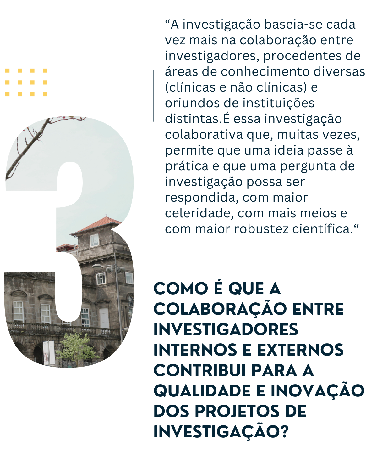 - Como é que a colaboração entre investigadores internos e externos à ULS de Santo António contribui para a qualidade e inovação dos projetos de investigação?