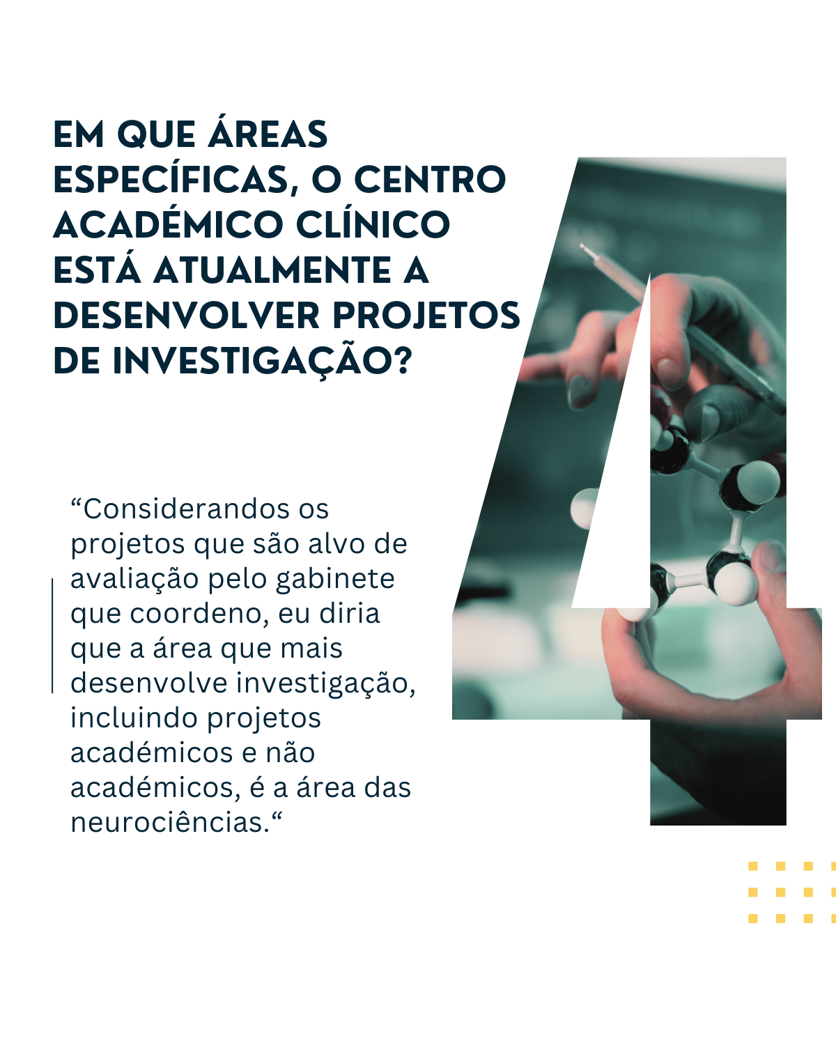 - Em que áreas específicas, o Centro Académico Clínico está atualmente a desenvolver projetos de investigação?