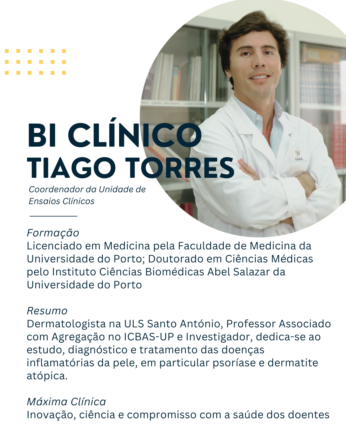 Nos últimos anos temos observado uma enorme evolução terapêutica na dermatologia. Este progresso fez com que o nosso serviço fosse frequentemente procurado pelos promotores para participar nessa evolução, conduzindo muitos ensaios, especialmente em doenças imunomediadas como a psoríase, dermatite atópica e hidradenite supurativa, entre outras. Por isso, tem sido com grande orgulho que vejo o nosso serviço ser um dos principais serviços envolvidos na condução de ensaios clínicos ao longo dos anos.