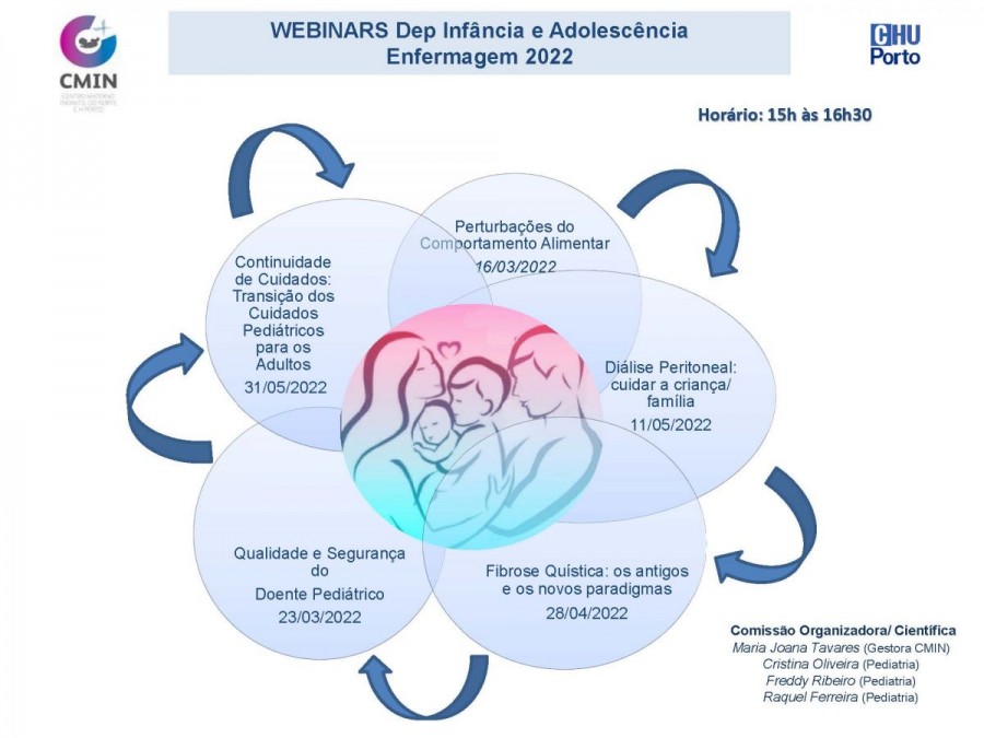Os Webinars CMIN 2022 - Departamento da Infância e Adolescência , vão decorrer de 16 de março a 31 de maio de 2022, no horário compreendido entre as 15h00 às 16h30.