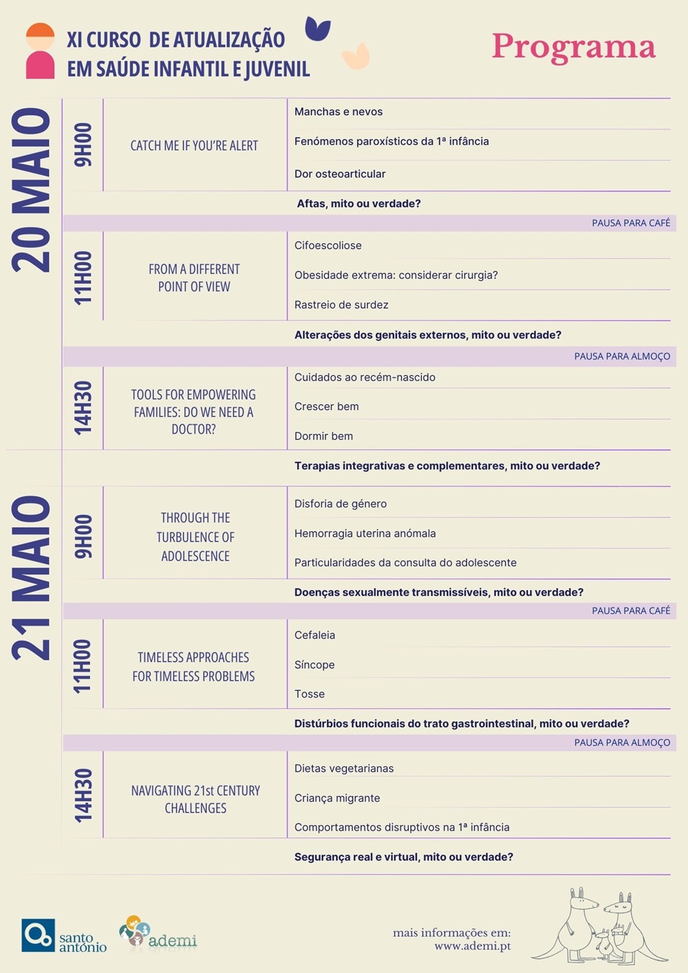 Nos próximos dias 20 e 21 de maio, irá decorrer o XI Curso de Atualização em Saúde Infantil e Juvenil.
