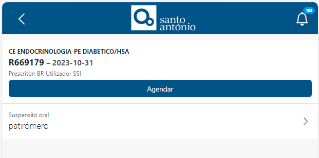 Pode consultar os medicamentos associados à prescrição selecionada e “Agendar”